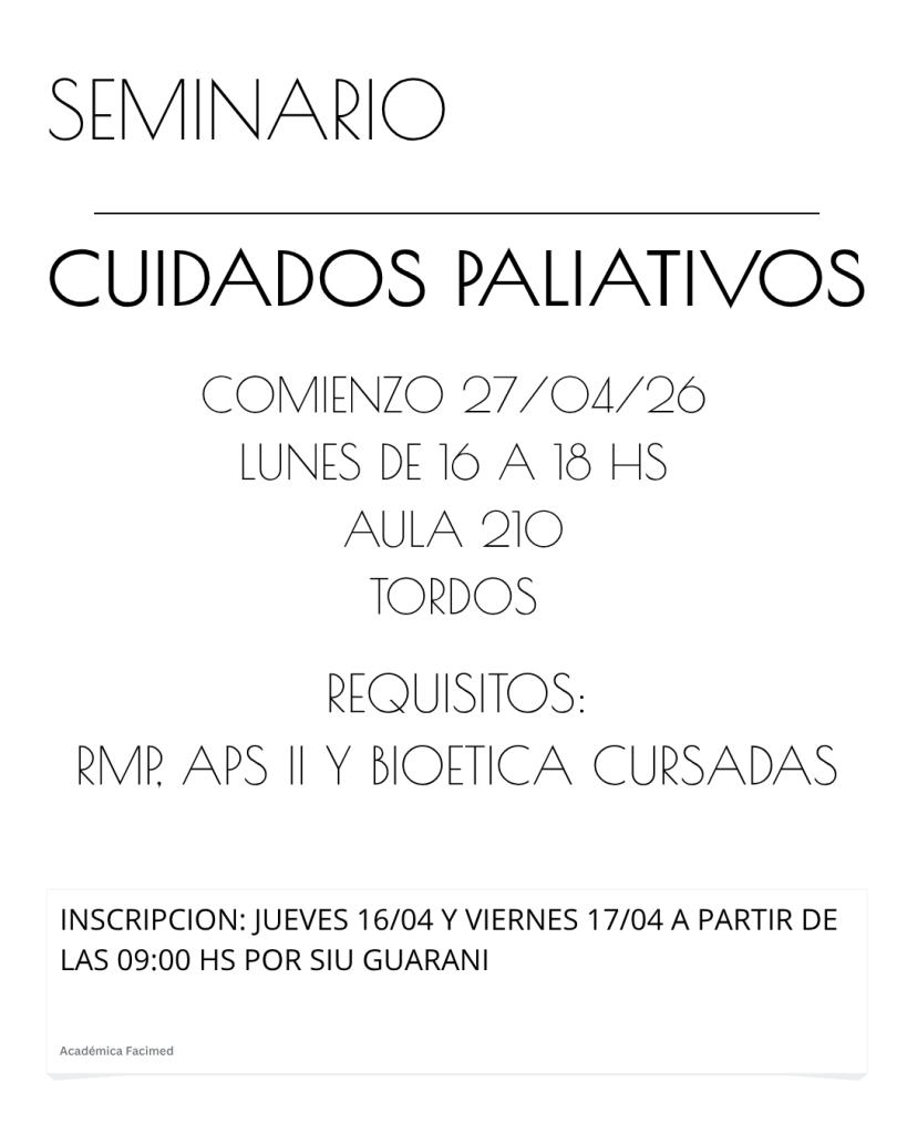ACTUALIZACIÓN SEMINARIOS – CUIDADOS PALIATIVOS 2026
