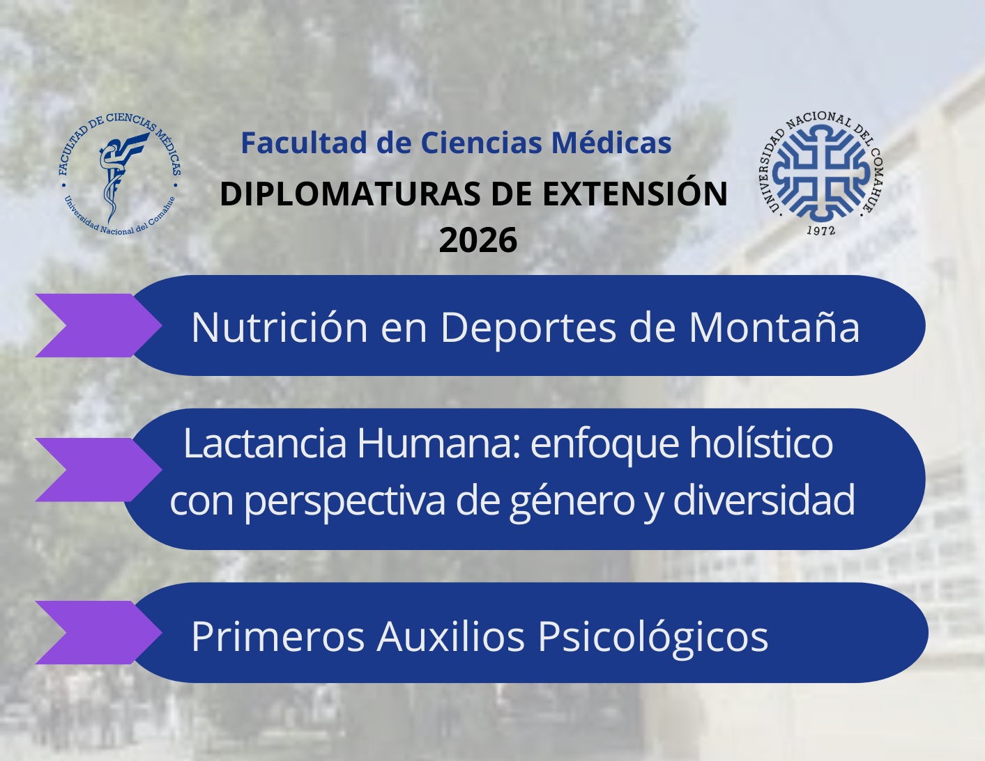 Diplomatura de Extensión: Nutrición en Deporte de Montaña. Link programa: https://drive.google.com/file/d/1Jujj_9fLxDWP1Y-PQcS9uZmEji9j5v8O/view?usp=sharing Arancel: matricula de $60.000 + 9 cuotas del mismo valor. Link inscripción: https://forms.gle/ampp4jDrFRtQ4pxP9 Diplomatura de Extensión: Primeros Auxilios Psicológicos Link programa: https://drive.google.com/file/d/19sS7QWcx-mriFdVl8PD5Mes4qP5nZJ6c/view?usp=sharing Arancel: matricula de $65.000 + 9 cuotas del mismo valor. Cronograma: https://drive.google.com/file/d/16zumM8b3O85uroLnWnybf3oGpSKmZ-0M/view?usp=drive_link Link INSCRIPCIÓN: https://forms.gle/FBmsbnkLWLasBwj5A Diplomatura Extensión: Lactancia Humana – Enfoque holístico con perspectiva de genero y